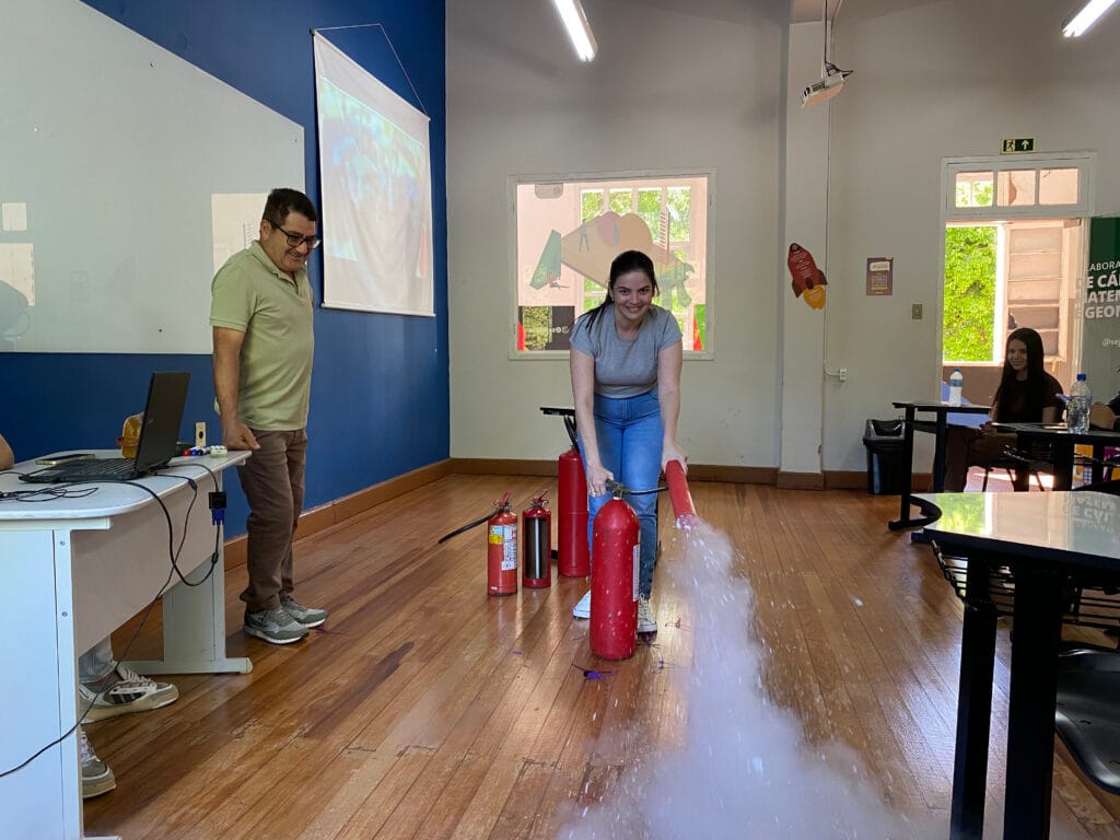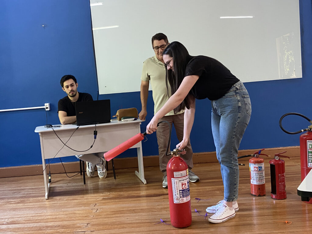 Durante a capacitação, os participantes receberam orientações teóricas e práticas sobre prevenção e combate a incêndios, evacuação de ambientes, uso correto de extintores e primeiros socorros. O objetivo do curso foi preparar a equipe para agir de forma segura e eficiente em situações de emergência, garantindo maior proteção à comunidade acadêmica e ao patrimônio da instituição.